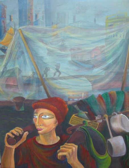En esta obra quise homenajear a los pintores argentinos, Quinquela, Berni, Spilimbergo,artistas que sensiblemente y con maestría plasmaron en la tela, al hombre , su quehacer y su época.