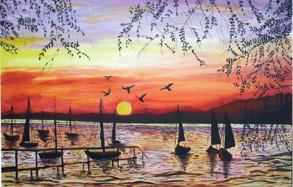Hola Ruben: Bienvenido a Artistas de la Tierra!!!!! las tres obras que nos muestras son realmente maravillosas, en ellas logras mostrar un gran talento a traves del excelente dominio de la pintura, los efectos de luz, texturas y detalles realizados nos lleva a esa conclusión. Estaba bastante indecisa pero me decidi por estas pequeñas barcas que flotan tranquilamente bajo un tranquilo y hermoso atardecer, el reflejo del cielo en el agua y la luz de tu obra invita al espectador a contemplar esta bella obra. Te felicito. Saludos Amada Bravo. |