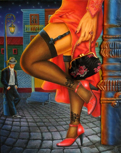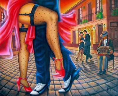 Título obra: Tango en Bar Sur - Tesi Te agradezco que me hayas traído este pedacito de Buenos Aires, a mi casa; con las ganas que tengo de ir, con lo que me gusta el tango y toda la música de tu tierra lo qo que me estremece un bandoneón. Que fuerza tiene tu pintura y tus colores: no queda espacio para el aburrimiento. Una gran obra. |