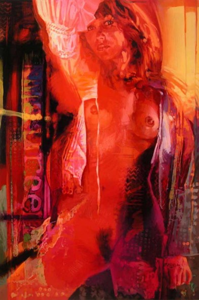 Aunque no me gusta la exposición de cuerpos desnudos con fin erótica, personalmente el retrato me parece buenísimo,y el fondo espléndido. Me gusta tu soltura pintura y tu habilidad en los retratos. Una expresión aparentemente espontánea y alegre de la mujer que da buena onda. |