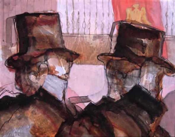 Título obra: 3Pabordes - peresoy Tienes mucha personalidad, has creado una obra con estilo propio y mucho encanto. Los colores de gran sobriedad, y los personajes transmiten sensaciones de misterio. ¡¡ Enhorabuena !! Un saludo.Funcionari |