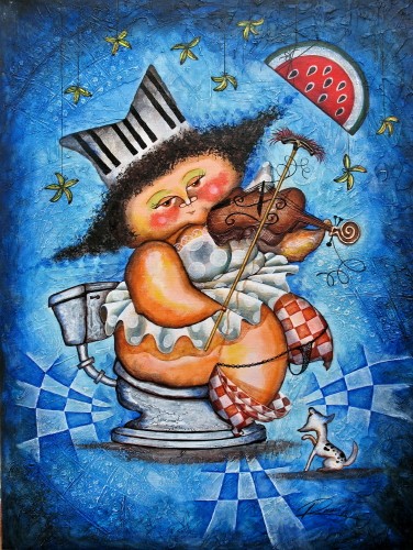 Título obra: Síi me pides el pescao no te lo doy. - ronald Hola Ronald: Sorprendido con tu exposición de obras. Las encuentro demasiado originales, ( EXCELENTES ). Me he quedado maravillado, las he visto una a una y no se cual elegir para enviarte mi mensaje de felicitación, porque todas me gustaron. Pero esta gorda tiene algo en especial que me atrapó desde que la vi, tal vez será por lo bien de su composición. Por los elemetos que observo, tiene una mezcla de música con erotismo, con coquetería, fíjate el detalle en el pelo, lo elegante de la silla, los cuadritos de las medias, la cara de inocente que tiene como diciendo!!! yo no rompo un plato, el colorido en toda la obra, y su realización, hacen un conjunto armonioso , que da gusto comtemplarlo con mucho detenimiento. Por todo ellos, te deseo el mejor de los éxitos. Recibe desde Venezuela , mis cordiales saludos. ÁNGEL EDECIO. |