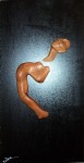 Esta obra se realizó mediante talla en madera de sapeli, con base de acero pavonado químico y con un acabado de goma laca.