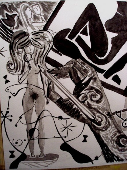 Dibujo en aguadas para la revista de estudiantes de literatura Phoenix, de la Universidad Nacional de Colombia. Acompaña una serie de poemas sobre obras de distintos pintores de comienzos del siglo XX