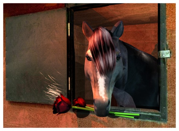 El “Hubism Quiéreme” es mi diseño 3d en Bryce 5, para la convocatoria de mail art, de La Asociación y Albergue CYD Santa María en su exposición "Contra el maltrato y abandono de caballos"