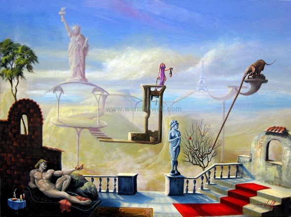 Visitar as obras surrealistas de Wendell nos faz mergulhar em um vale misterioso, recheado de detalher enigmáticos. Um novo mundo que se cria a partir de sua mente fértil e voraz criativiadade, onde a mitologia e a surrealidade se encontram e trazem de arrasto a estagnação do tempo, unindo o passado ao presente, nos prende um largo tempo, mas não se olvida o artista de deixar uma janela para o retorno a realidade ou quiçá para o futuro...PARABÉNS por teu dom e talento y BIENVENIDO ao Portal. Waldir N. Dias