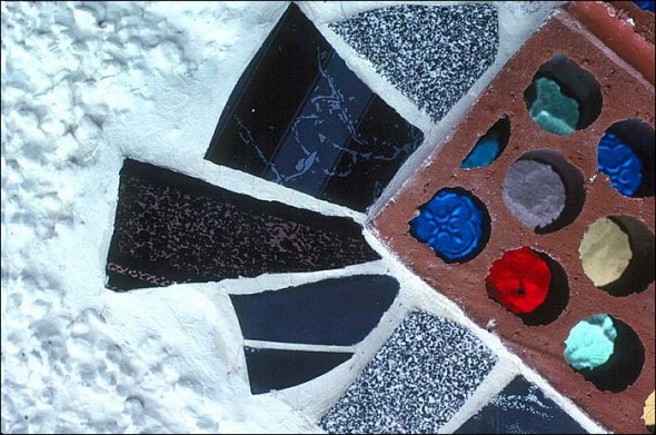 Obra de arte: Piscina MASSó, Madrid, 1990. ( detalle de vidriera de valla, reciclando...) en artistasdelatierra.com
