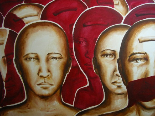 Intrigantes tus sabezas rapadas,inquietantes tambien y robóticas.Has conseguido transmitir un sentimiento al espectador