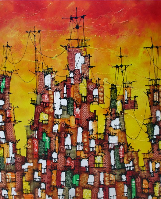 Jorge, quiero felicitarte por tus obras... Recorrí en parte tu galería y esta "Ciudad en Derrumbe" llamó mi atención!