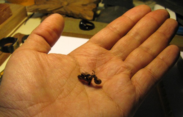 Miniatura de motocicleta con manubrio y ruedas móviles
