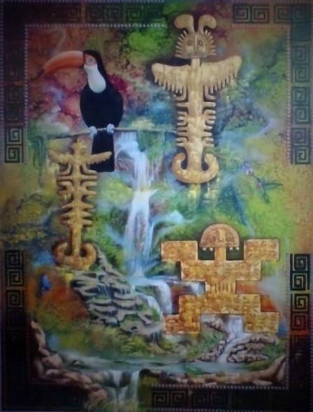 obra con tematica precolombina y alusiva a la naturaleza como riqueza universal