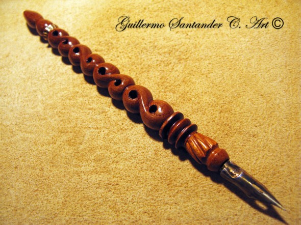 pluma caligráfica, talla hecha en madera antigua de cedro rojo, diseño unico, completamente funcional.