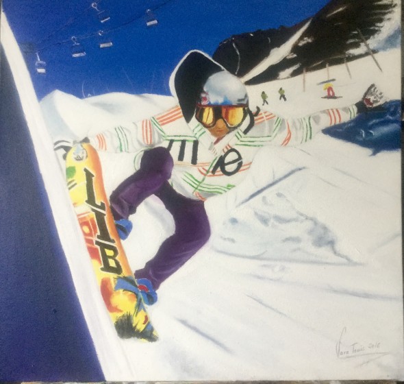 Obra de arte: Mi sobrino Raúl Saseta esquiando sobre tabla en el Pirineo Aragones en artistasdelatierra.com