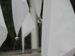 Luego se vieron las tejas de barro extendidas en el piso donde yacen mudas absortas y desprendidas de toda utilidad, obsoletas, pero llenas de un enigmático aspecto estético ocupando un espacio dentro de la obra, donde son rociadas, no con la lluvia de la cual deben protegernos, sino de flores, recordándonos que las cosas obsoletas y que creemos inservibles siempre estarán disponibles en todo momento para realizar buenas acciones con ellas, un techo le cae bien a los que mas lo necesitan. Enhorabuena maestro.