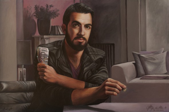 Un hombre sobervio con poder económico, dando una miseria como ayuda cuando tiene más que dar.