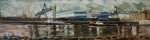 Obra realizada con acrílico sobre tabla,61X36Cm.Un día por la mañana frente al Arriaga y el puente El Arenal de Bilbao.