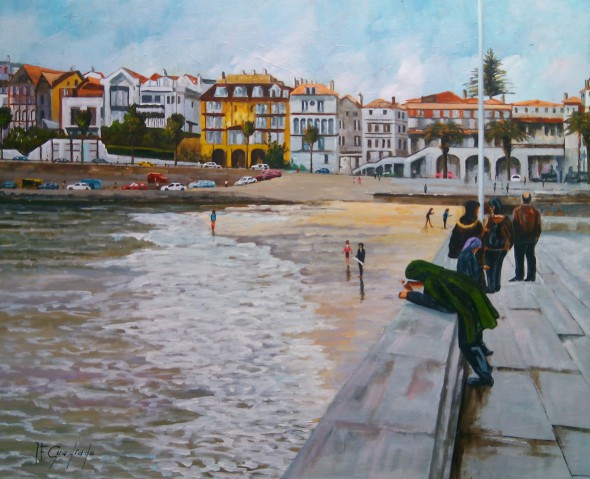 Obra realizada con acrílico sobre lienzo, 61X50 Cm.Una mañana de lluvia en una playa de Lisboa. ( Portugal). Año 2013. Realizado en el 2018.