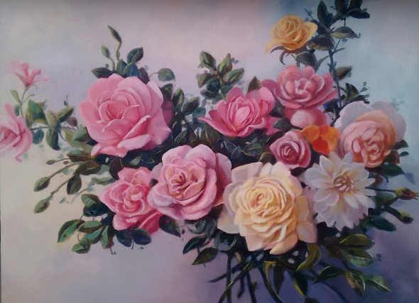 Rosas Oleo sobre lienzo - roses oil on canvas - ???? ?? ??????