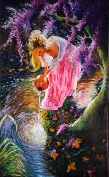 Este cuadro también esta realizado íntegramente a espátula, en él trato de plasmar la luz de la mañana, incidiendo en la joven aguadora y en el entorno que la rodea dentro de un estilo impresionista.