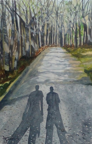 Obra realizada con acuarela sobre papel, 50X35 Cm. Año 2026, Se trata de la ruta del Robledal de Espinosa de los Monteros, Burgos, en el mes de abril.