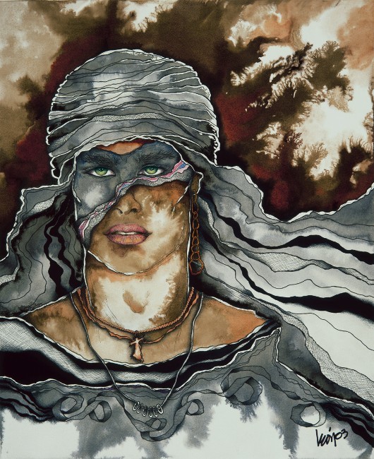 Es un dibujo de reminiscencias árabes, lleno de detalles, acompañado de magistrales manchas y excelentes luces, encuentro armonía, movimiento y fuerza en toda la obra, muy buena expresión en la mirada, que hacen un comjunto, un todo, digno de admirarse.