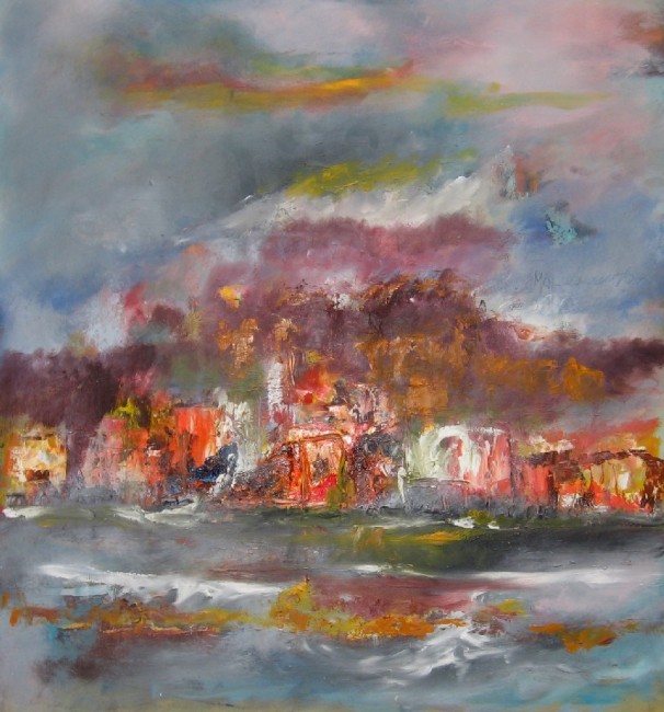 es una sensación recibida de un paisaje intepretado con espátula y pintura plana con matices
