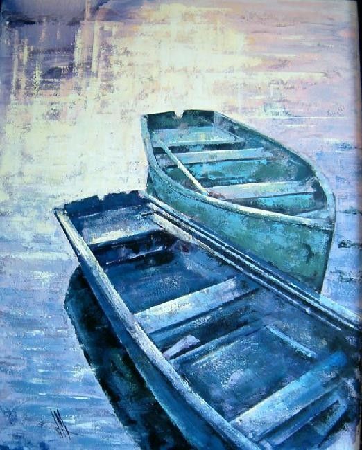 es una obra que refleja la tranquilidad de una tarde un un pequeno muelle en las orillas de un lago. Los tonos azules se mezclan los los amarillos, rozados y moraditos. con los amarillos se le ha dado la luz a la obra.