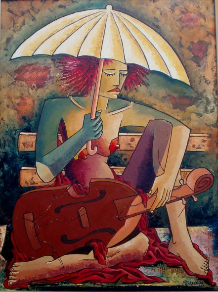 El semblante triste y la sensación de abatimiento del personaje demuestran la buena percepción que expresas en esta obra.