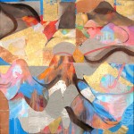 Acrílico, oro, plata, cobre y lino sobre madera