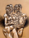 Cesar nos muestra en esta obra como el título ayuda a comprender lo que quiere expresar el autor. El descanso con los brazos en alto y apoyados en la cabeza. Expresión de placer y mirada perdida. Agarra fuerte con la tercera mano la cervecita y la cuarta mano el pitillo. Refuerza todo ello por el encuadre casi en círculo que obliga al observador que no se desvie del asunto principal. Buena composición y técnica. Moderniza la obra con cuadrículas, cortes y duplicidades. Sin embargo, el color rojo no ayuda a la tranquilidad y placer. Aunque es un tono de la noche quizá le hubiese ido mejor un tono de evasión. El título tiene mucha gracia.