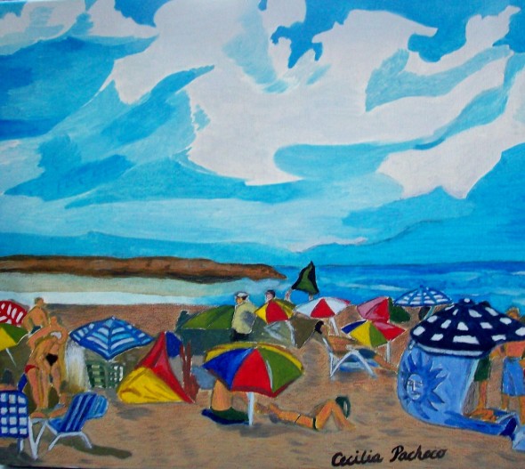 SE ME OCURRE VIENDO TU OBRA . " ENTRE TODOS LOS COLORES DE AQUELLA PLAYA ,NO HABIA FORMA DE ENCONTRAR A MI AMIGA . DE REPENTE ALLÁ A LO LEJOS ,UN PAÑUELO VERDE ESPERANZA ME INDICABA EN DONDE SE ENCONTRABA MI META DESEADA "". ENHORABUENA.