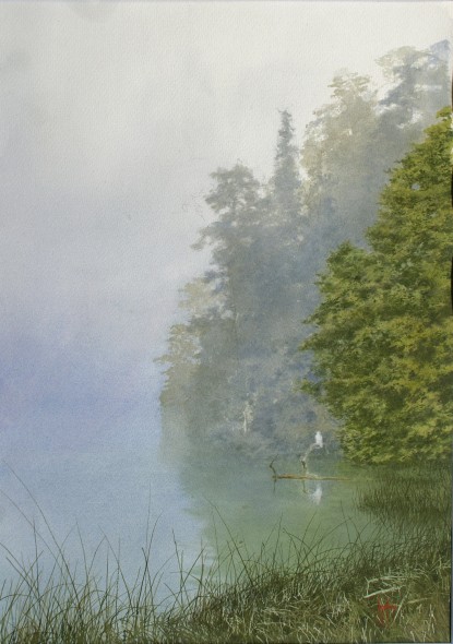 Que lindo paisaje, nostalgico y muy frio, unos siente el aire humedo en el rostro, te felicito tienes un buen manejo de la acuarela, Saludos Amada Bravo.