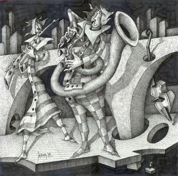 Obra de arte: Envuelto por un saxo en artistasdelatierra.com