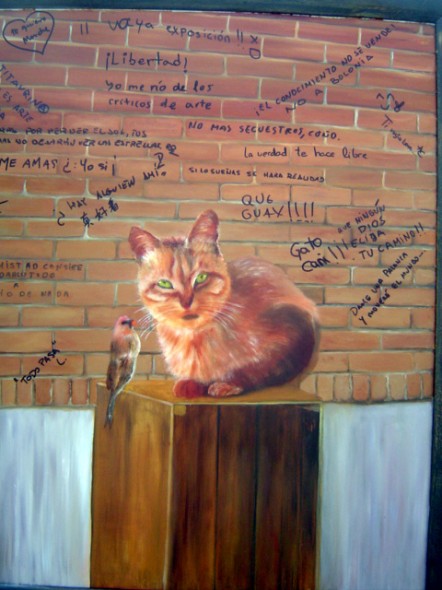 lo presente en una exposicion al aire libre las pintadas las hicieron la gente que pasaba por la calle
