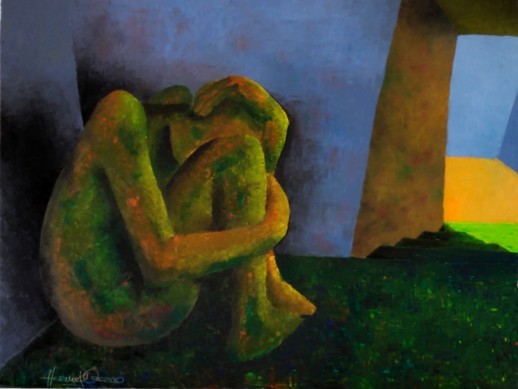 Es una obra muy buena, tien un manejo del color muy adecuado para la expresibidad de pintura, lo que mas me gusta es como sus brazos se aferran al cuerpo, es algo melacolica pero a la vez se puede ver una luz que le da un equibrio a la expresión de la pintura