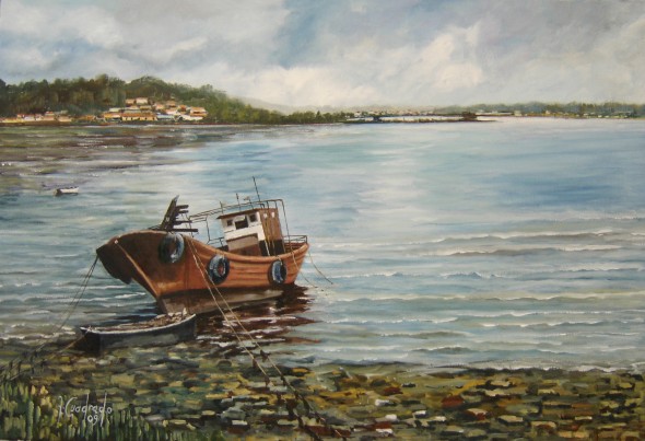 Obra realizada al óleo sobre lienzo, de estilo impresionista clasico, medidas: 73X50cm.Junio del 2009, y representa un rincon de la ría de la toja- Pontevedra,( Galicia ).