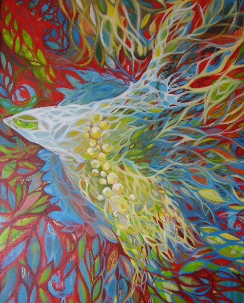 Esta obra es muy linda. Para mí lo más importante que veo en "vuelo" es la atmósfera que generás a través de los ritmos en la composición, tanto de las formas como de los colores.